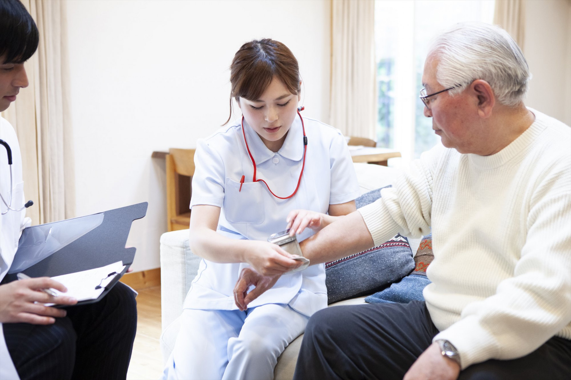 そこで、在宅で医療を受けることができるようにと2020年7月に貝塚市で訪問看護ステーションを創業いたしました。これにより患者様は住み慣れたご自宅で療養に専念でき、介護負担の軽減へと繋がります。看護師が患者様のご自宅までお向かいし、主治医からの指示書を元に病状に対する適切な医療行為を実施しながら健康も定期的にチェックいたしますので、ご自宅でも安心です。まずは血圧・体温・脈拍などといった基本のバイタルチェックから入り、病状の確認をして必要な医療措置を施し、最後にメンタル面のケアも欠かしません。このように、地域医療を訪問型の看護サービスで支えてまいります。