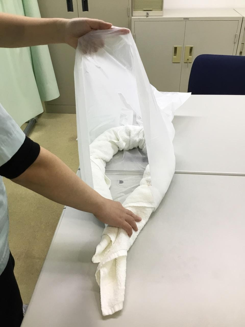今日は、自宅であるもので寝たきりの方でもベッド上での洗髪方法を一つお伝えできればと思います。